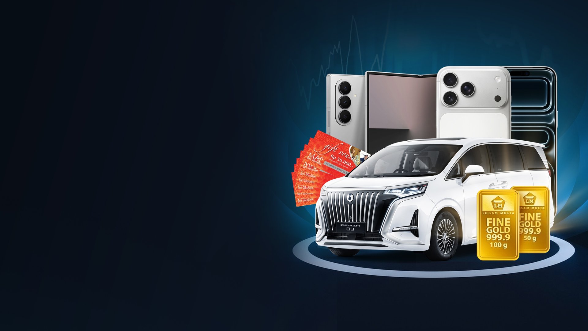 Hadiah termasuk mobil sebagai grand prize, serta berbagai gadget dan hadiah menarik lainnya. Reward terbatas dan prioritas untuk pendaftar awal.